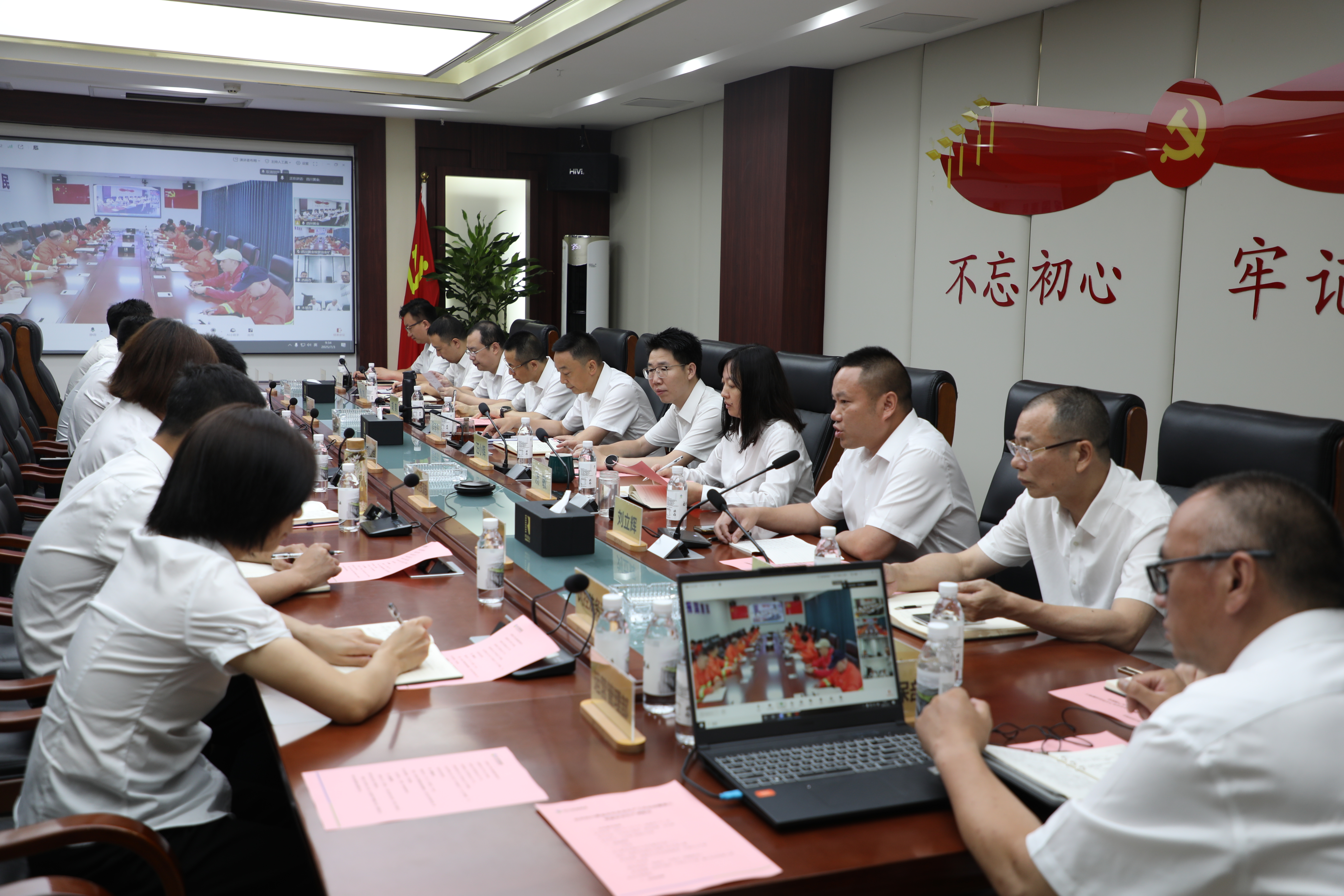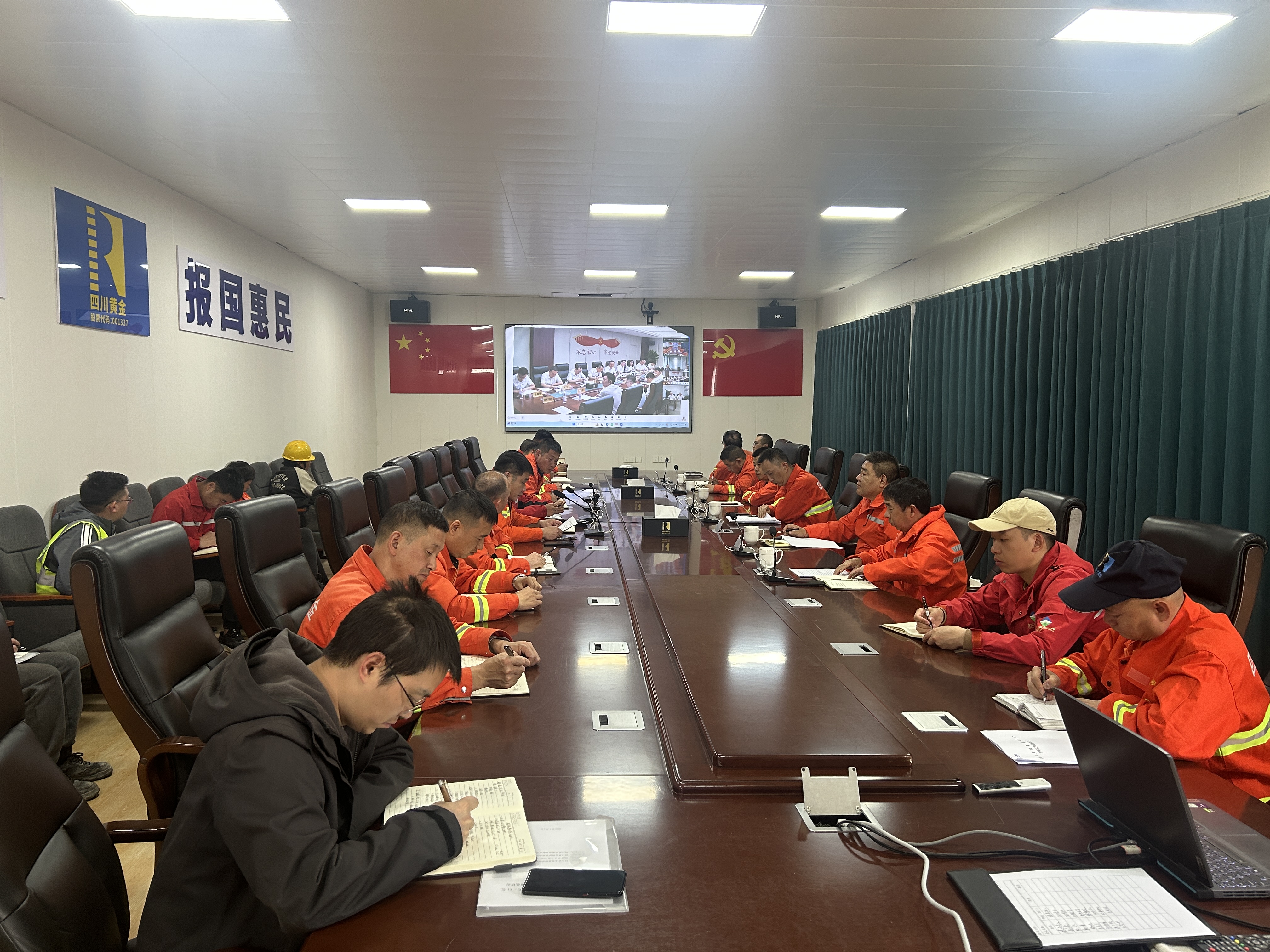 成都分公司中层人员及以上参加会议,梭罗沟金矿、西昌办、木里办视频参会。