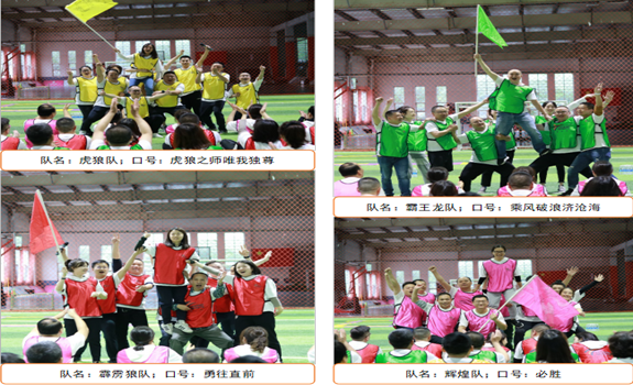 本次运动会以“发展体能,突出趣味”为主题,并以游戏的方式随机成立了四支队伍,各队伍博采众长,各有千秋,不分伯仲。