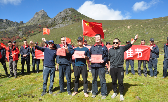 登山团建活动在迎风飘扬的五星红旗下,在参加活动人员《歌唱祖国》的嘹亮歌声中达到高潮,大家满怀激情祝福伟大祖国母亲的生日,祝愿祖国繁荣富强!